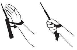 Håndtaket på SkiErg1 (den grå SkiErg produsert fra mai 2009 - juli 2014) ble levert med stropp. Bruk håndstroppen og håndtaket slik som man ville brukt en skistav. La hånden gli opp gjennom løkken og ta deretter tak i håndtaket.