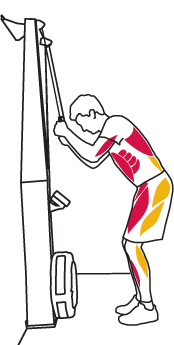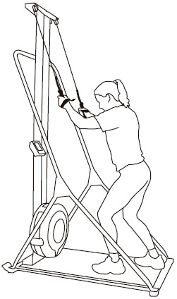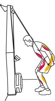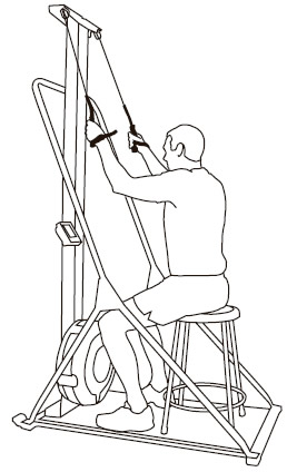 ![]() Trekk håndtakene nedover ved å ta i med magen og ved å bøye knærne. Hold armene bøyd for å holde håndtakene i nærheten av ansiktet. |